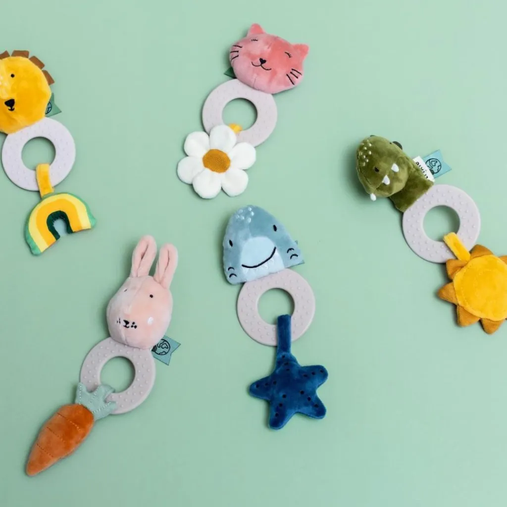 Conçu à partir de coton biologique et de polyester recyclé, ce jouet de dentition est à la fois doux, sûr et respectueux de l’environnement. Léger et coloré, il se glisse facilement dans les petites mains et suit bébé dans toutes ses aventures. C’est l’allié parfait pour rendre la poussée dentaire plus douce et les journées plus joyeuses.