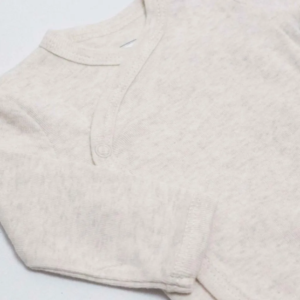 Leur ouverture croisée sur le devant facilite l’habillage et le change sans avoir à passer le vêtement par la tête — une attention précieuse pour les tout-petits, surtout durant leurs premiers jours. Le design mêle simplicité et nature : un body beige chiné et un autre vert olive orné de jolis épis de blé, pour une touche douce et authentique dans la garde-robe de bébé.