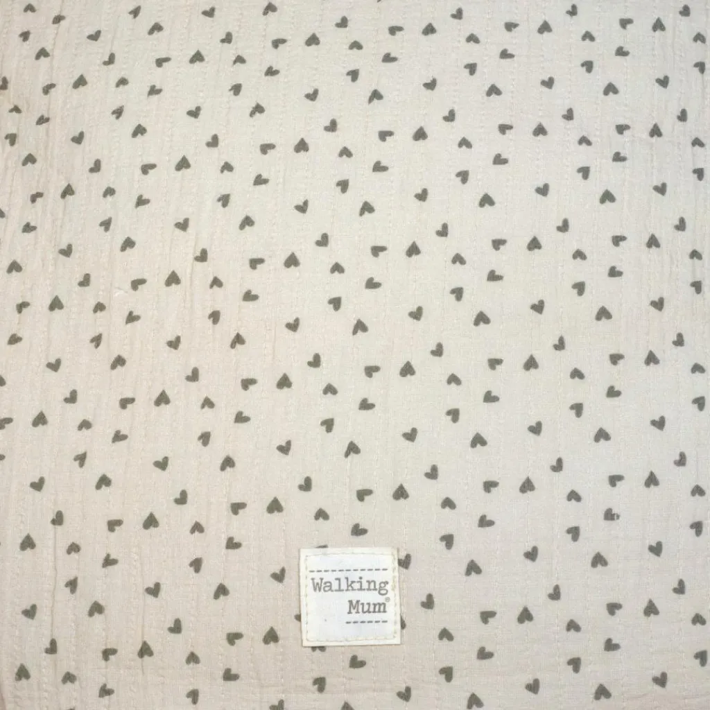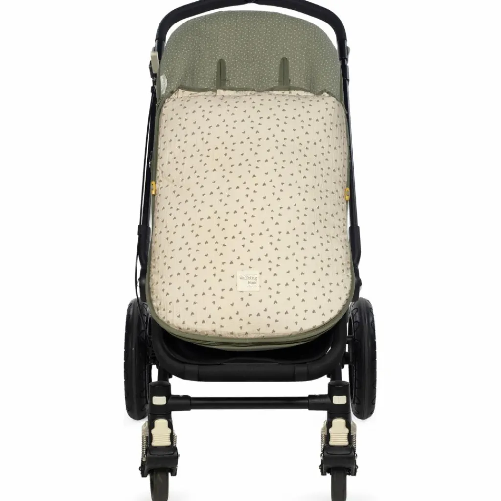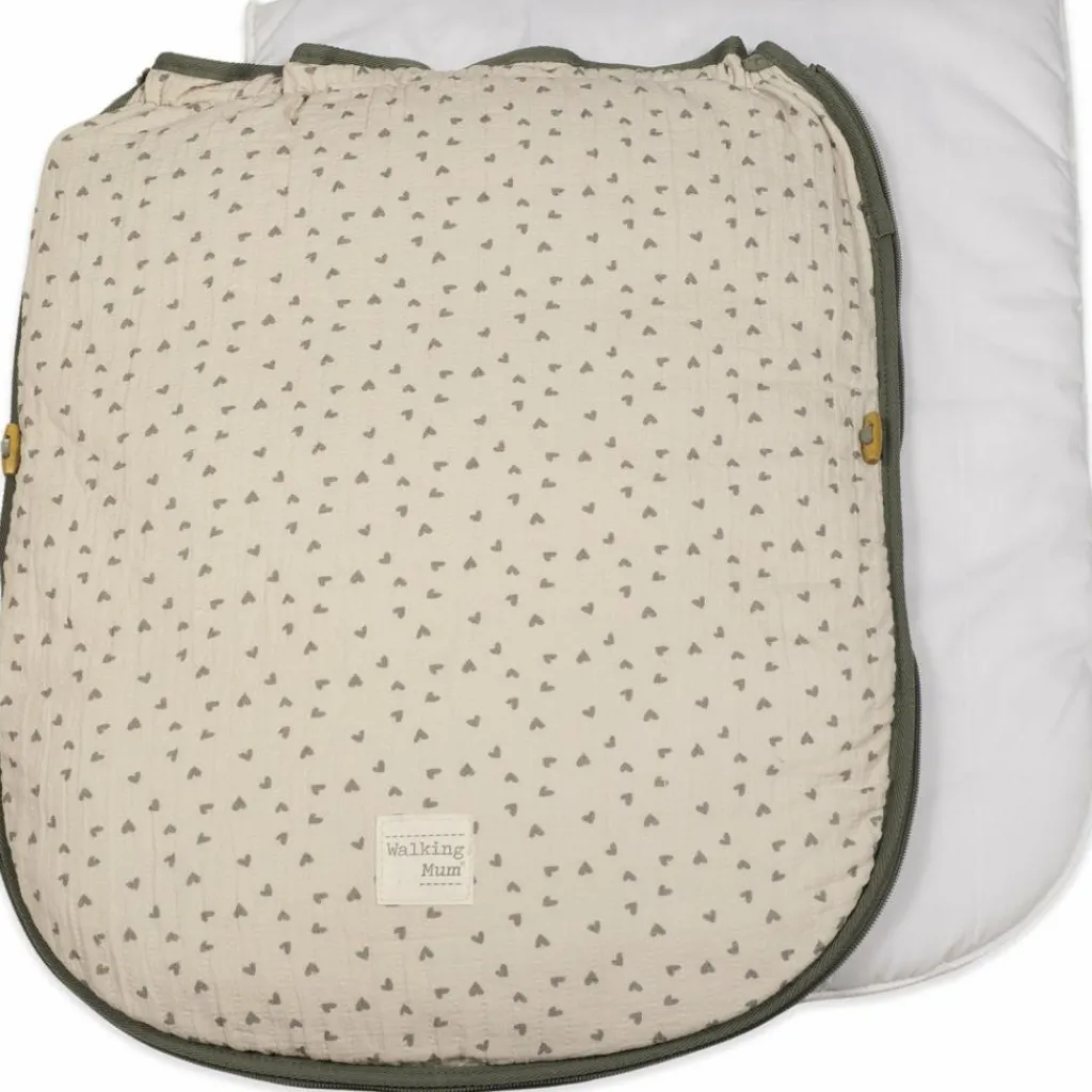 – La housse de poussette Poppy Moss avec cœur est fabriquée avec un tissu 100% coton recyclé.