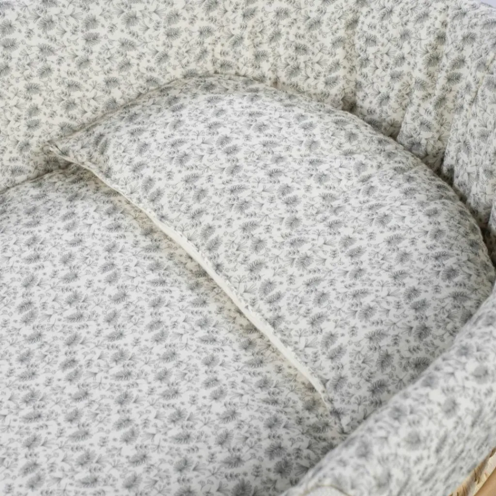 – Housse pour couffin 100% coton : douce et respirante, elle habille le berceau d’un charme naturel et élégant.