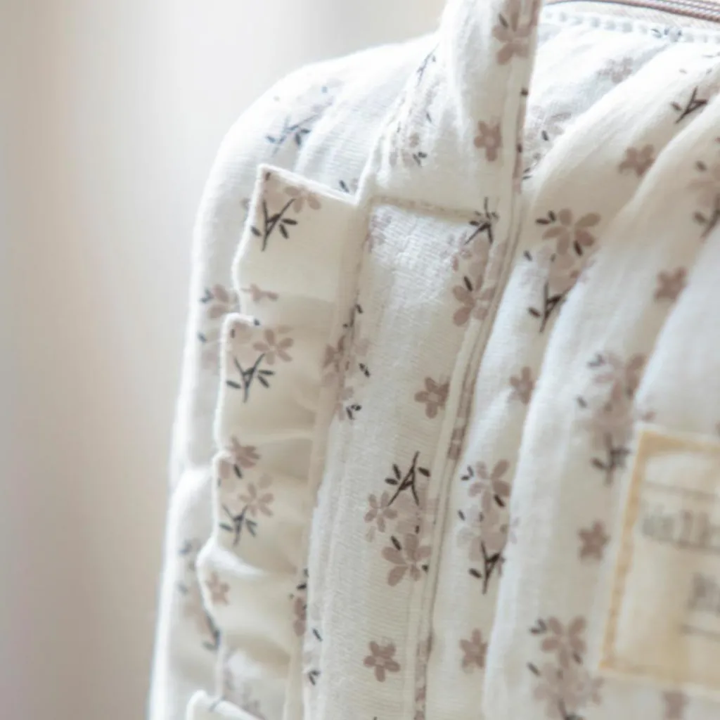 – Le mini sac Botton à imprimé floral est le sac idéal pour transporter tous les éléments essentiels à la promenade de bébé.