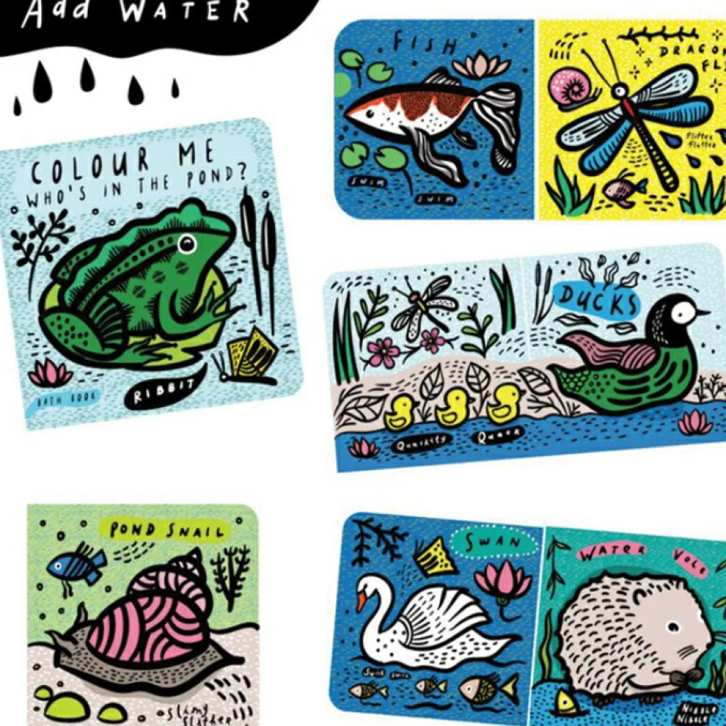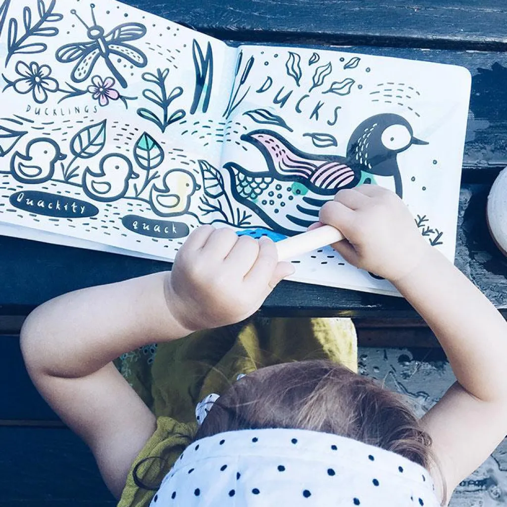 Le livre de bain Animaux de l’étang de la marque Wee Gallery transformera le rituel du bain en un instant privilégié de jeu et de découverte. Ce livre de bain magnifiquement illustré changera de couleur comme par magie lorsqu’il sera au contact de l’eau. Il fera découvrir à votre bébé la faune de l’étang avec entre autres une charmante grenouille, un cygne et une libellule.