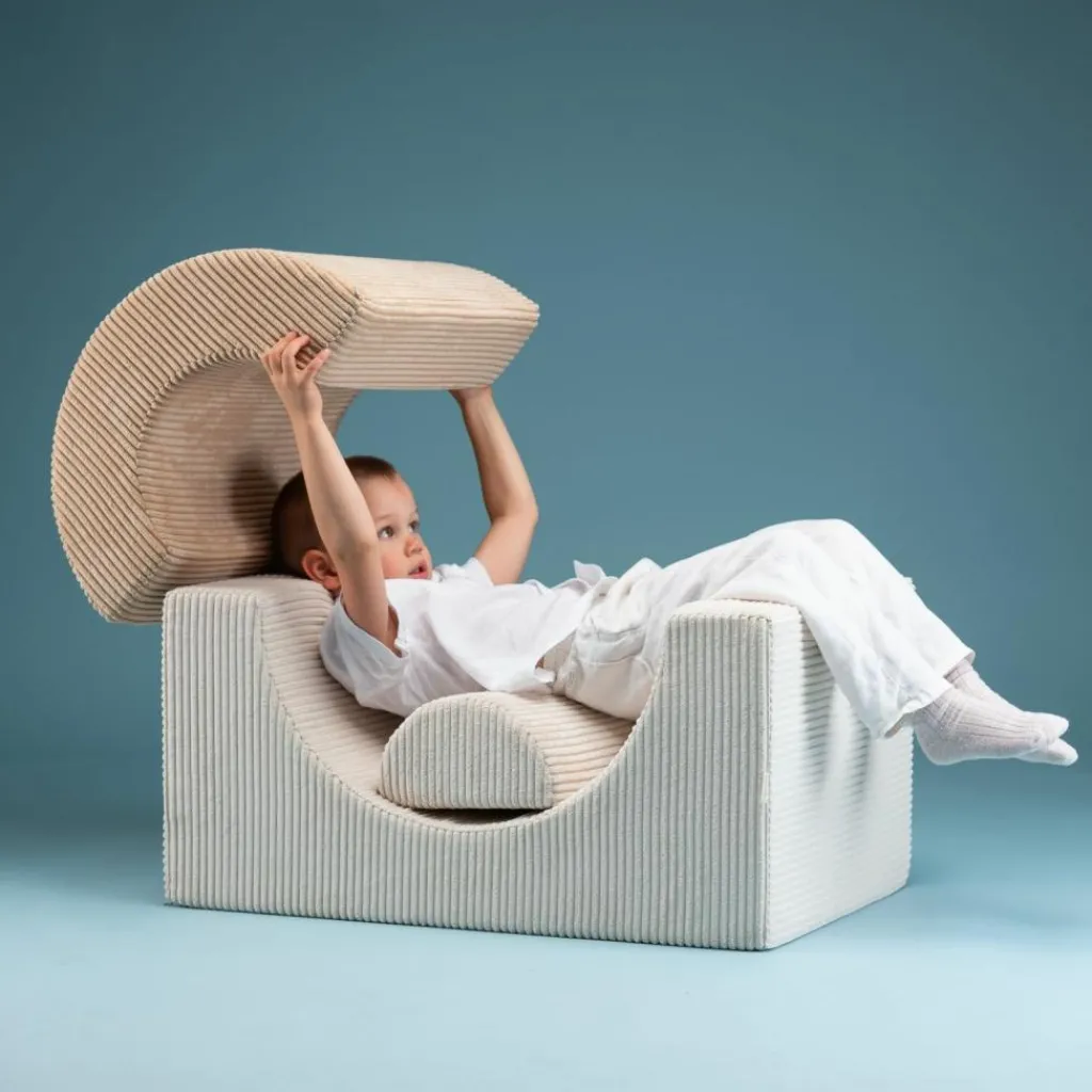 – Transformable en chaise confortable, table ludique, pouf, cabane…