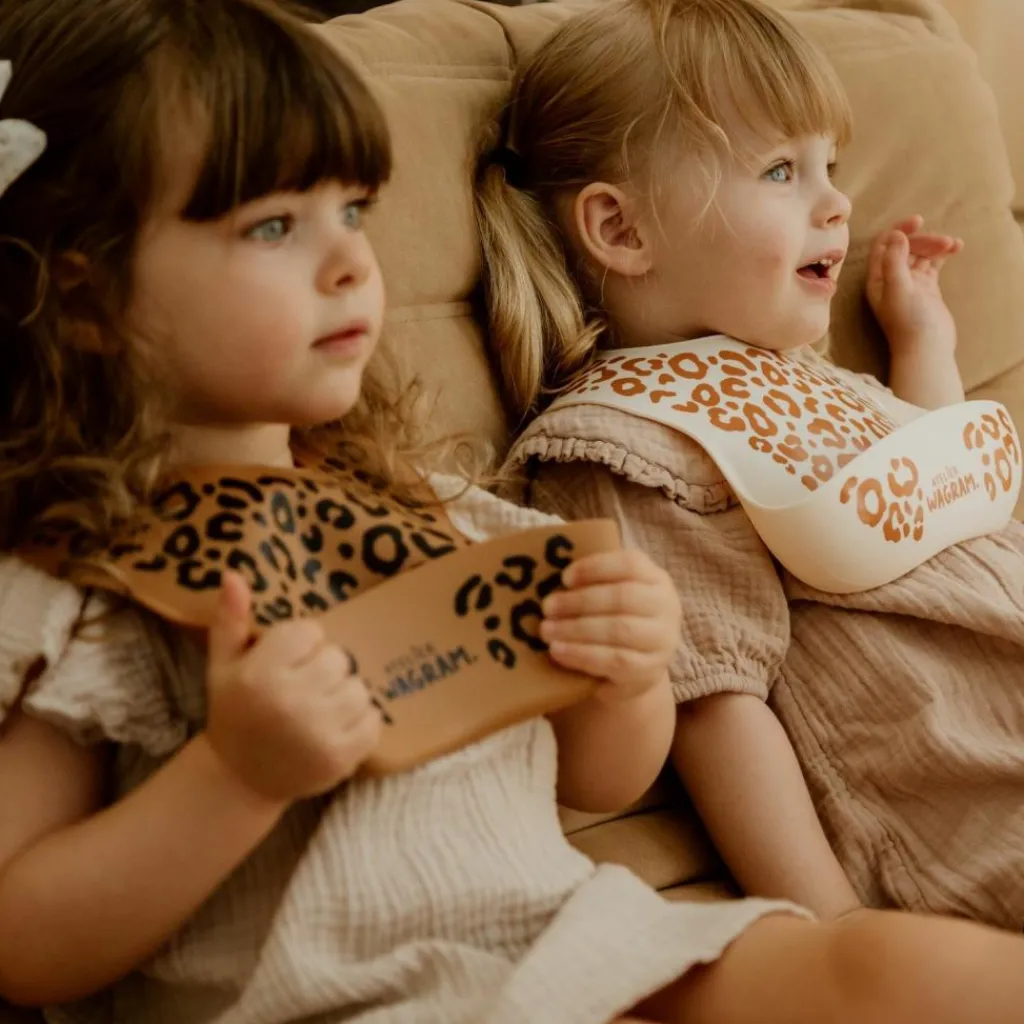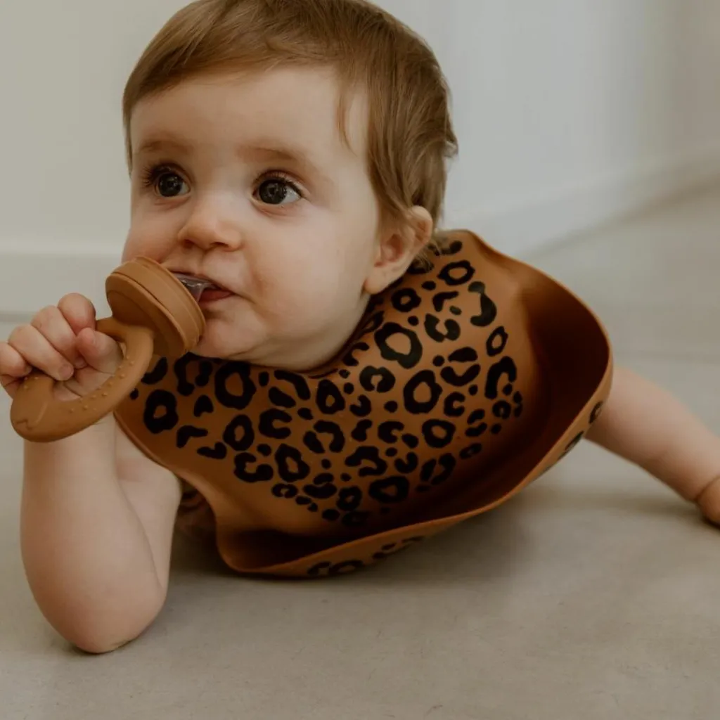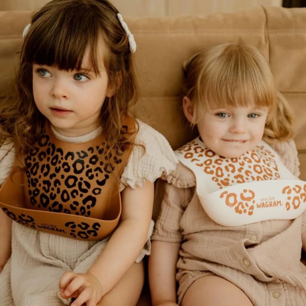 Atelier Wagram Bavoir en silicone Léopard Marron