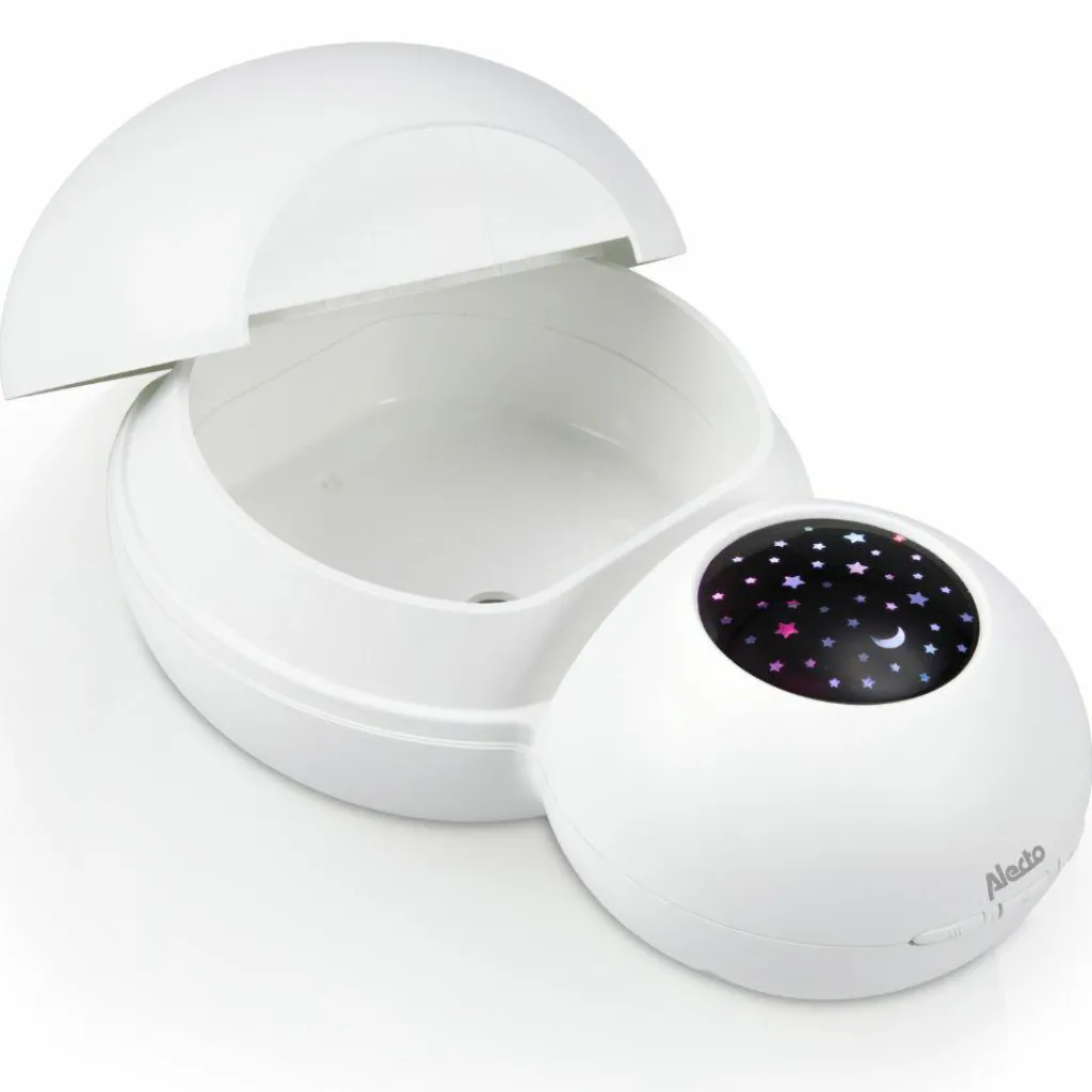 – Cet humidificateur vous assure un taux d’humidité adéquat dans la chambre de votre enfant et projette au plafond un beau ciel étoilé.
