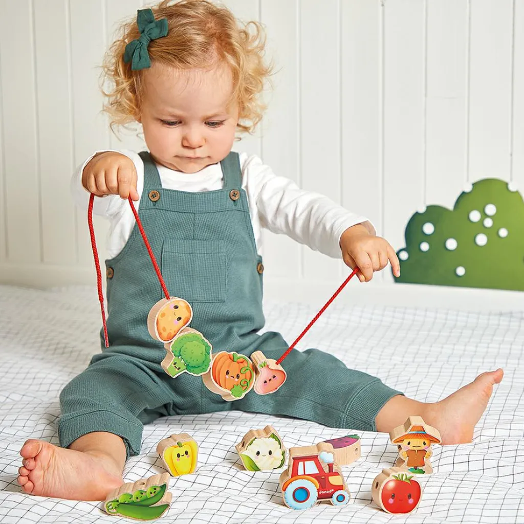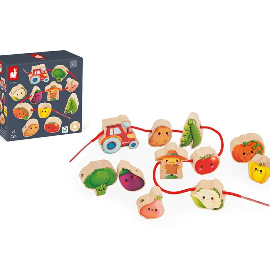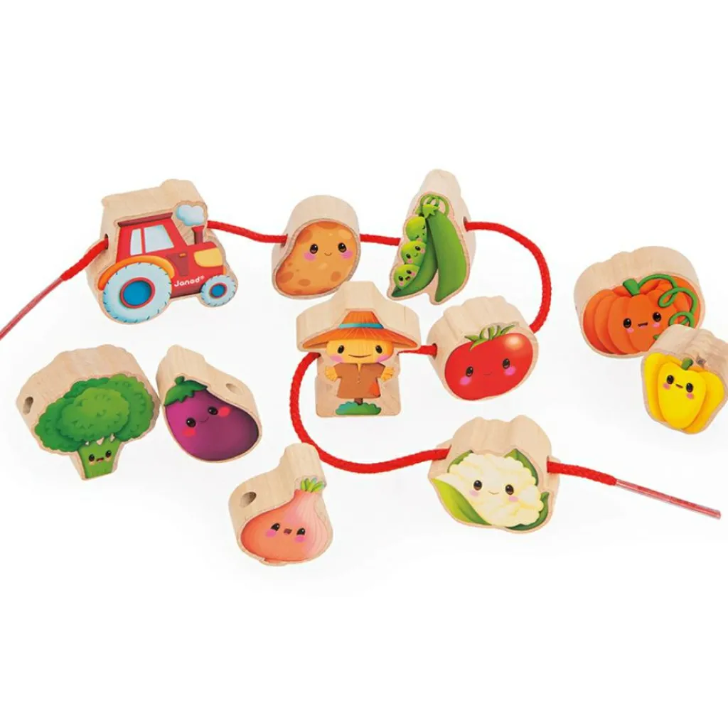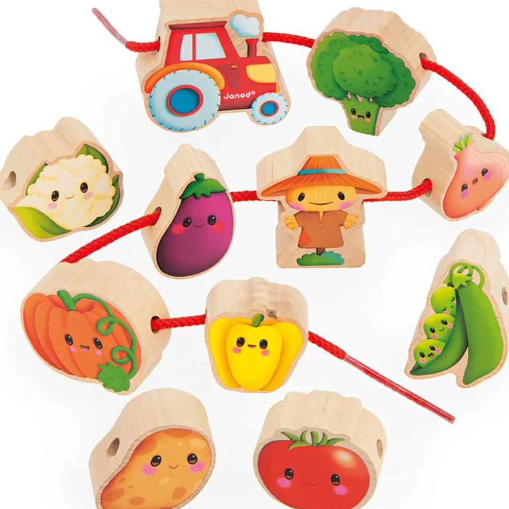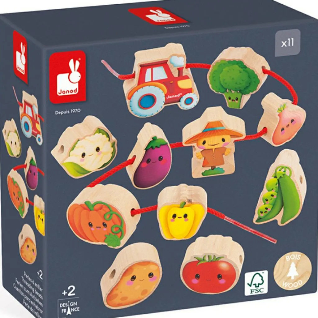Janod Perles à enfiler en bois Ferme potager (11 pièces)