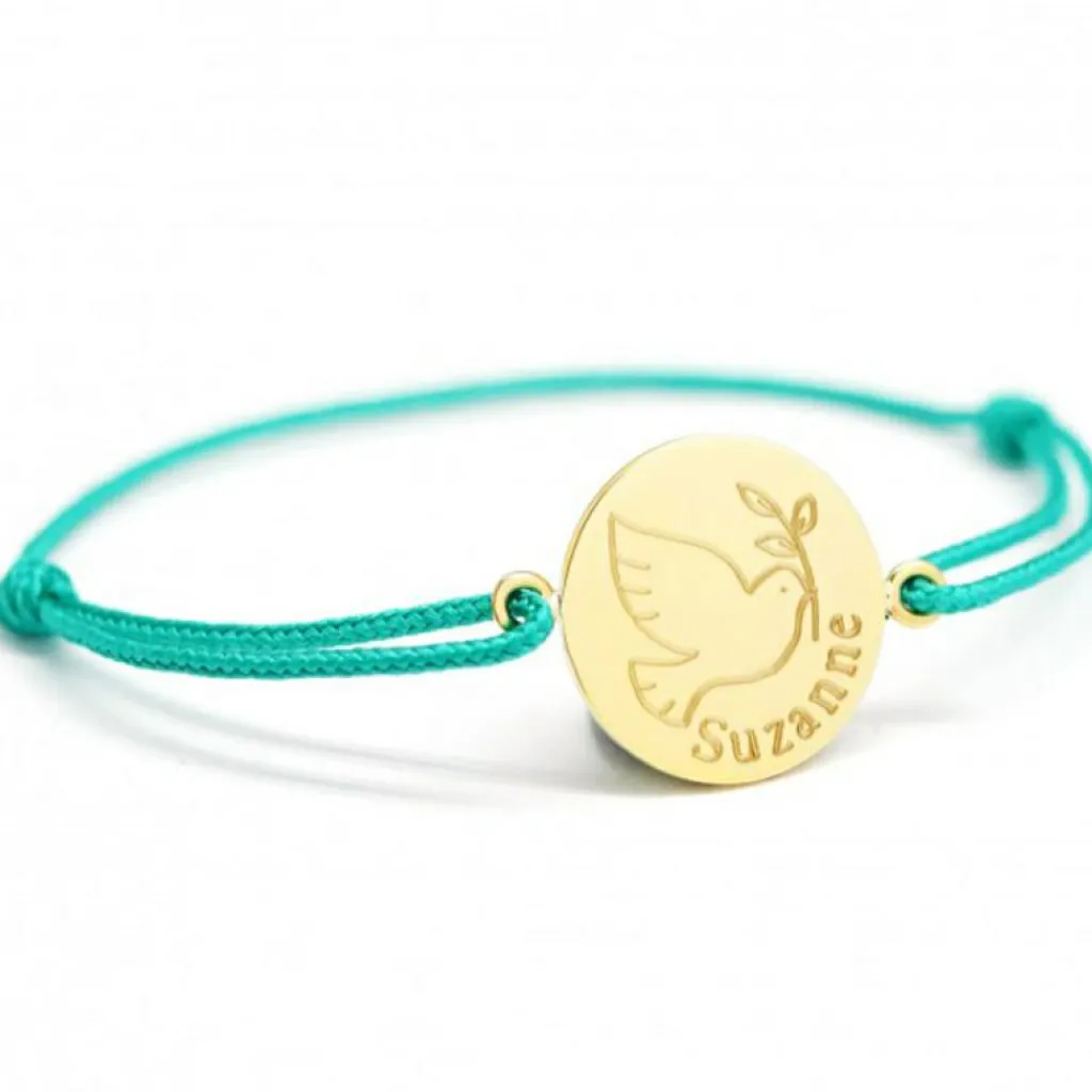 Le bracelet cordon Colombe personnalisable de la marque Petits Trésors est un cadeau mémorable pour un anniversaire ou un baptême. Personnalisé spécialement pour l’enfant, il sera un souvenir qui l’accompagnera plusieurs années.
