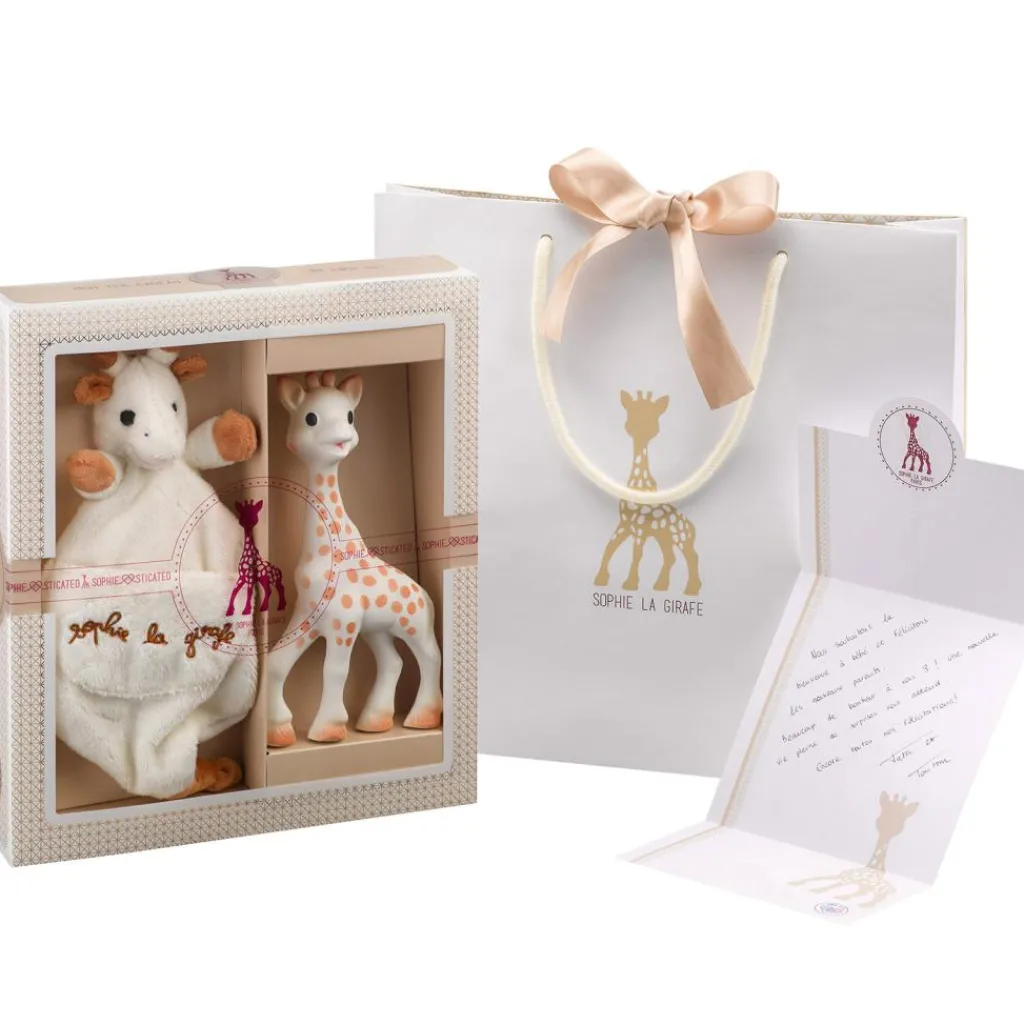 Le coffret cadeau Tendresse Sophiesticated de la marque Sophie la Girafe est le présent idéal pour célébrer la venue au monde d’un nouveau-né ! C’est un cadeau indémodable qui ravira bébé.